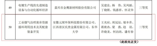 bw必威西汉姆联官方网站“工业烟气治理废弃资源循环利用技术及其配套装备开发”项目获得三等奖。